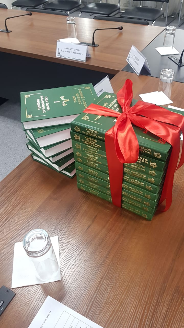 Арада екі жылға жуық уақыт өткенде жақұт тілші ғалымдары Алматыға он бес томдық сөздіктерін көтеріп қайта келді. Бұл осыдан оншақты күн бұрын болған елеулі оқия болатын. Олардың сөздік көтеріп, бұлттың үстін шарлап Алматыға келгенінің де өзіндік мазмұны бар сияқты. Өткен жолғы сапарларында тұнық сахаша сөздік жасаймыз деп таңдандырған сахалар енді сол үлкен ұжымдық еңбектерінің соңғы нүктесі қойылғаннан кейін, түрік тілдес ағайынның қара шаңырағында орда тіккен қазақ халқына осы бір жетістіктерін көрсетіп, ақ шағи қала Алматыда тұсаукесер жасауға келіпті. Қалай ойласаң да орынды. Жөн талғам.